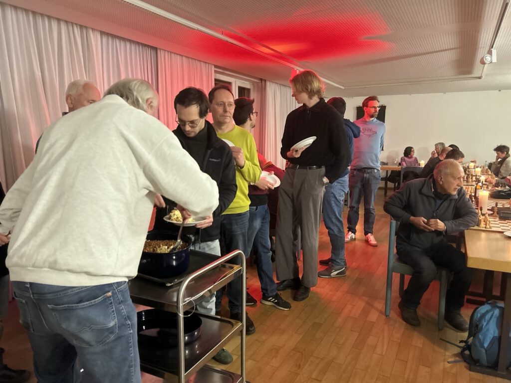 🙏 Ein herzliches Dankeschön geht wie immer an Werner Türk, der erneut eine große Menge hervorragender Käsespätzle für uns zubereitet hat. Für Kinderpunsch, Glühwein und Plätzchen bedanken wir uns außerdem ganz besonders bei Nicole. Viele weitere Schachfreunde haben ebenfalls etwas zu diesem Treff beigesteuert, sodass wir sie leider nicht alle namentlich nennen können – dafür ein herzliches Dankeschön an alle!