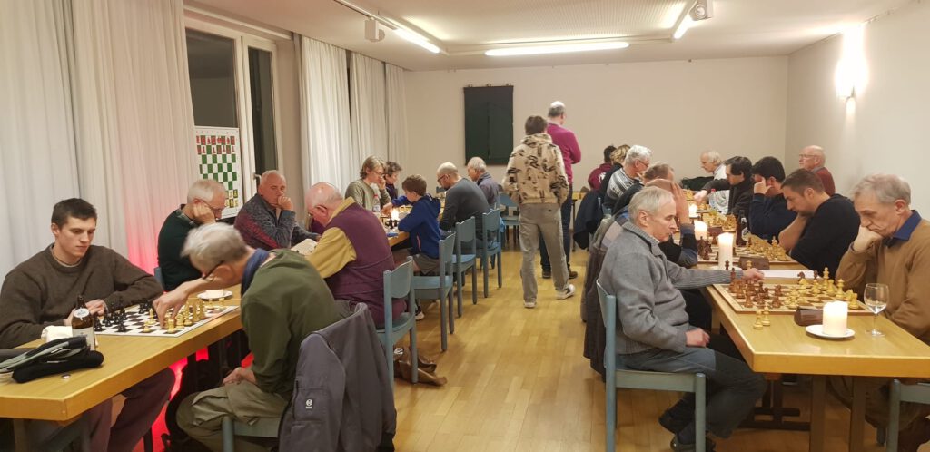 Erstmals wurde ein Probeturnier ausgetragen, um die Turnierbedenkzeit 12 Minuten + 5 Sekunden Inkrement des Sternsinger-Turniers am 4.1. praktisch zu erproben. Das Angebot wurde gut angenommen, insbesondere von Spielerinnen und Spielern, die zum ersten Mal Turnierluft schnuppern wollen.